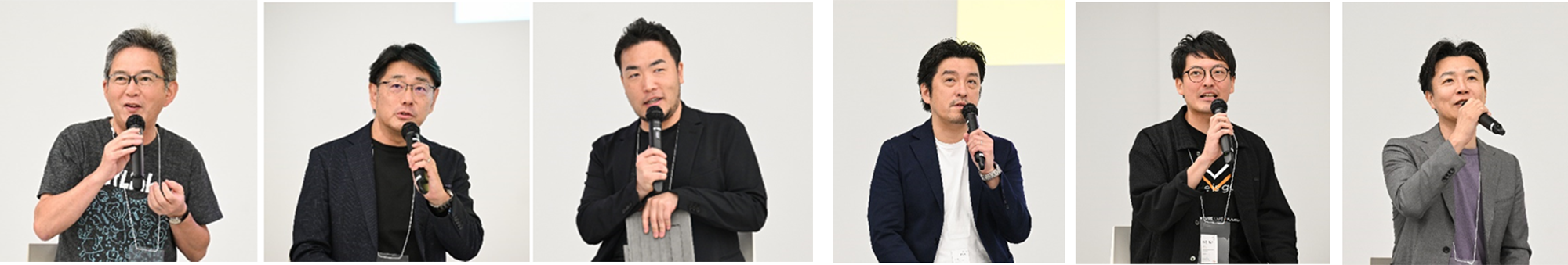 左から岡田、佐藤氏、伊藤氏(KeynoteSession1の登壇者) / 所氏、松尾氏、岩田氏(KeynoteSession2の登壇者)