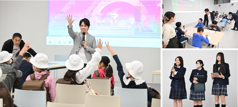 横浜国立大学教育学部附属鎌倉小学校荒谷舞先生のクラスが司会進行を担当し、オープニングを盛り上げました。また、青稜高校生徒と社会人メンバーとともにifLink EXを使ったifLinkオオギリワークショップの公開授業を実施しました。