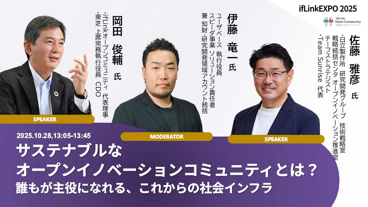 「ifLinkオープンコミュニティ」岡田代表理事と、日立グループ発の社内コミュニティ「Team Sunrise」佐藤代表によるスペシャル対談。両コミュニティが果たす社会インフラとしてのこれからの役割等をテーマに語り合います。